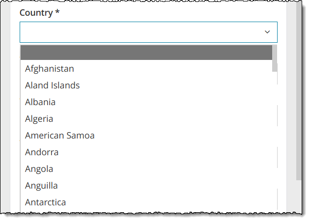 Some of the field's mandatory statuses may change depending upon which country you choose. |