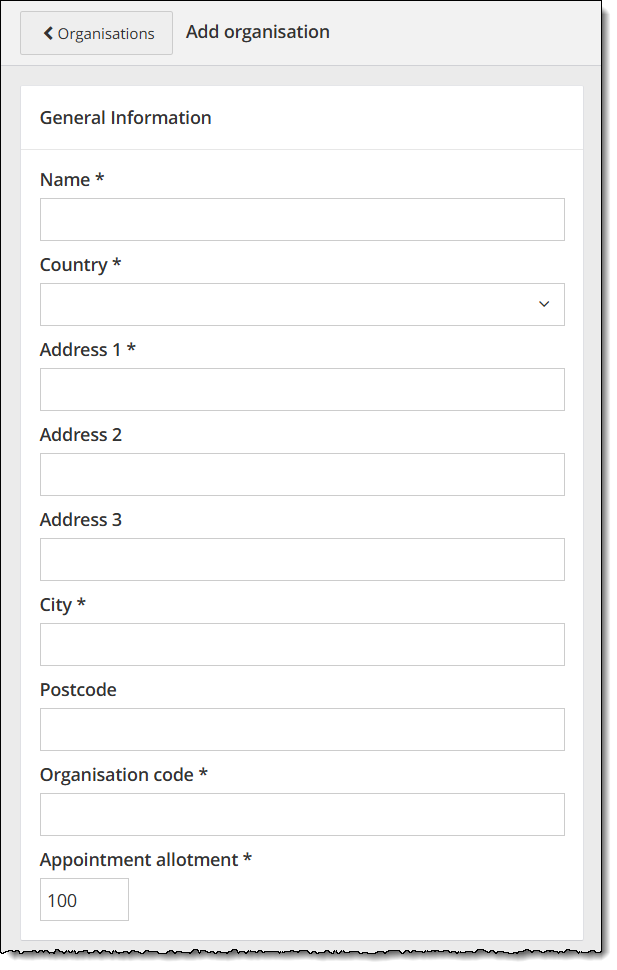 - Enter the organization's Postcode if it is mandatory.