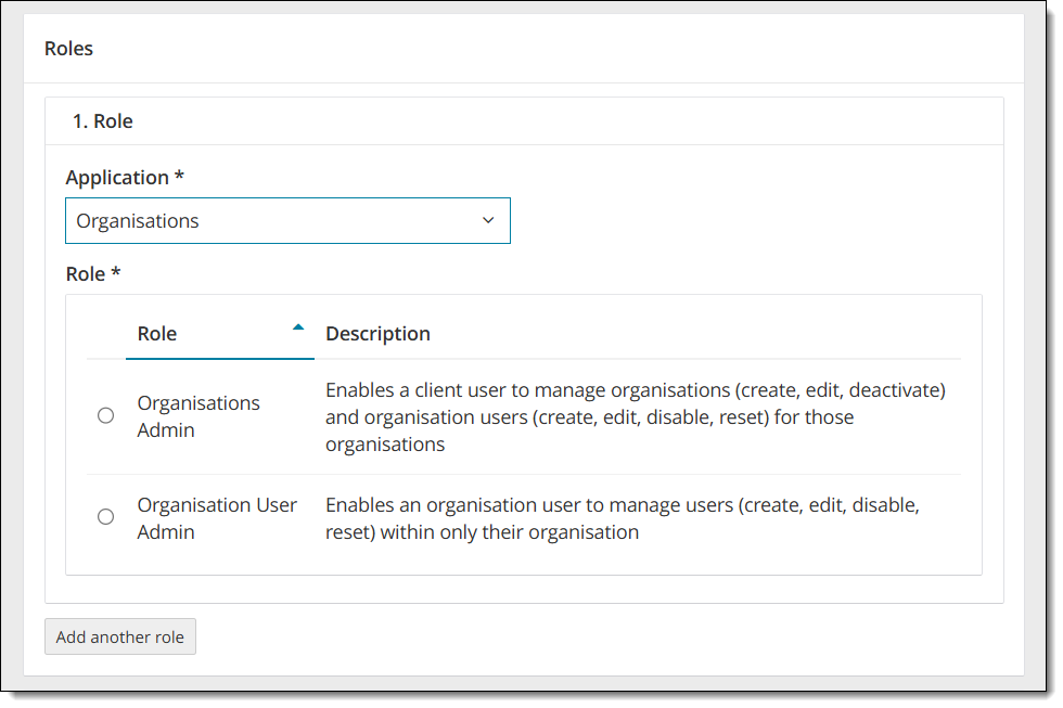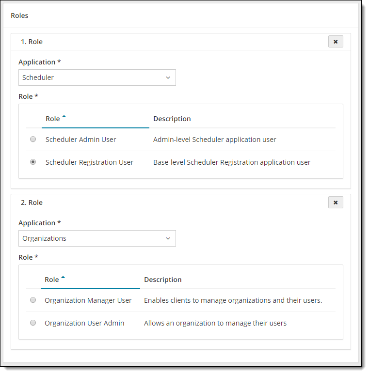 - A second Role section is displayed. Select the desired role option button for the second role.