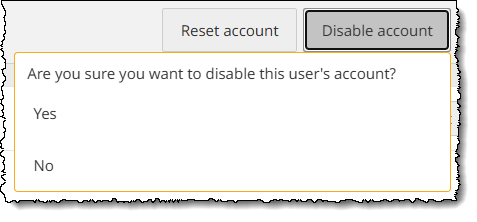 button. - Select Yes when asked if you are sure you want to disable this user's account.