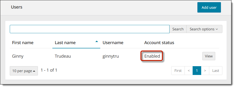 You may enable a user account if it has been disabled. User accounts may be enabled from either the View Users page or from the Edit Users page.