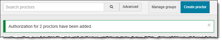 Upon successful Authorization creation, you are returned to the search proctors screen. A message above the list states that Authorization for the number of proctors was added.