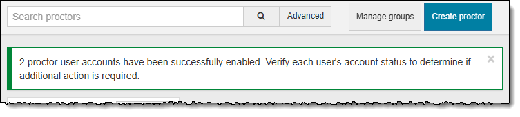 - Search for the desired proctor accounts in the list using either the simple search or advanced search listed above.