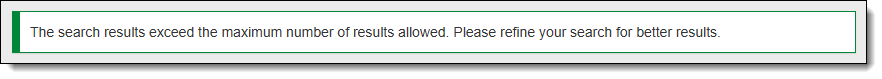 If the search criterion returns too many records, you can refine your advanced search by selecting the Advanced search button again. Your previous search criteria are still listed in the panel. Enter additional search criteria and run the search again. |