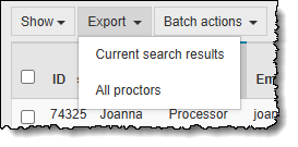 - On the Search Proctors page, select the Export drop-down arrow and select the All proctors menu.
