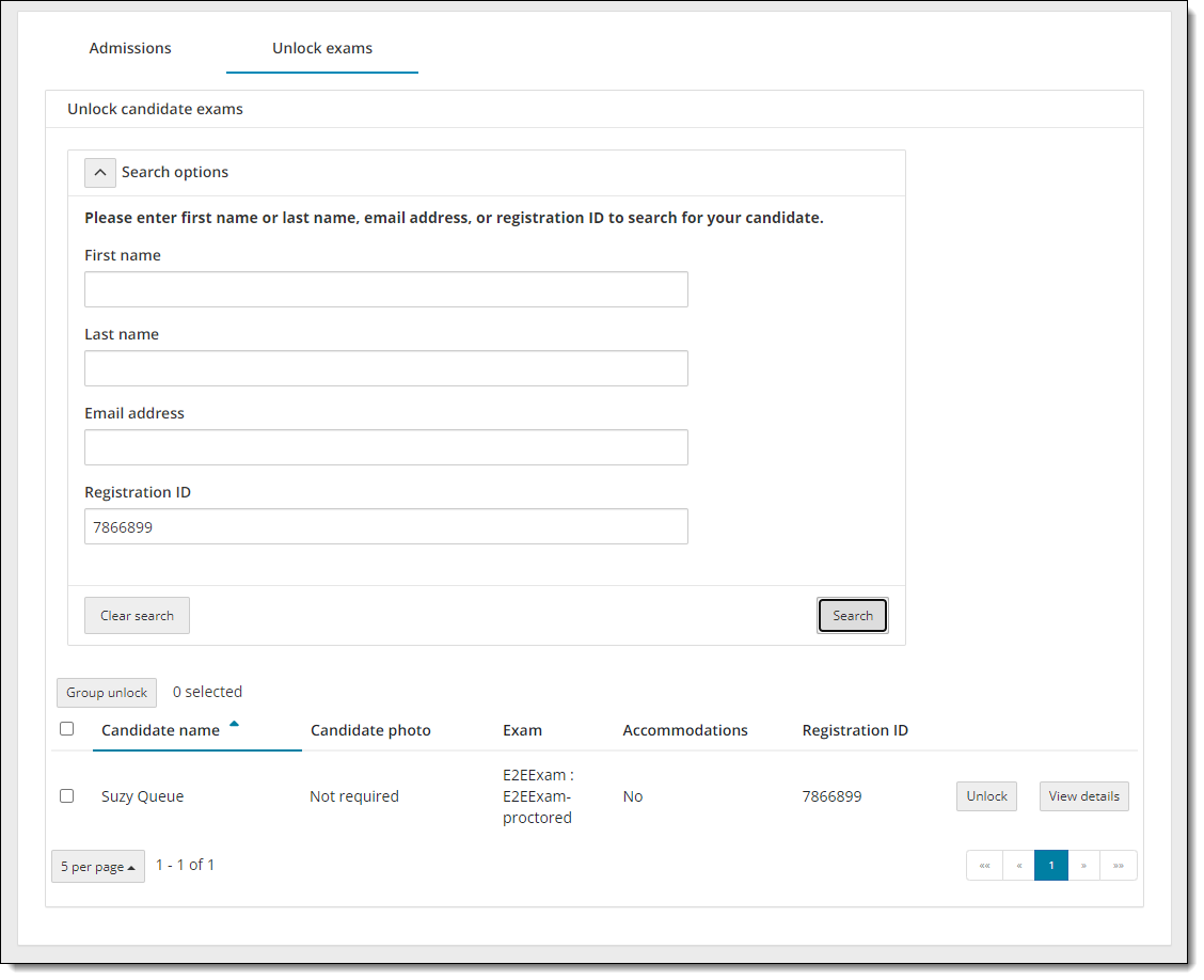 Unlock single candidate exam