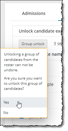 - The candidate status under the Candidate admissions roster changes from Admitted to Unlock Requested.