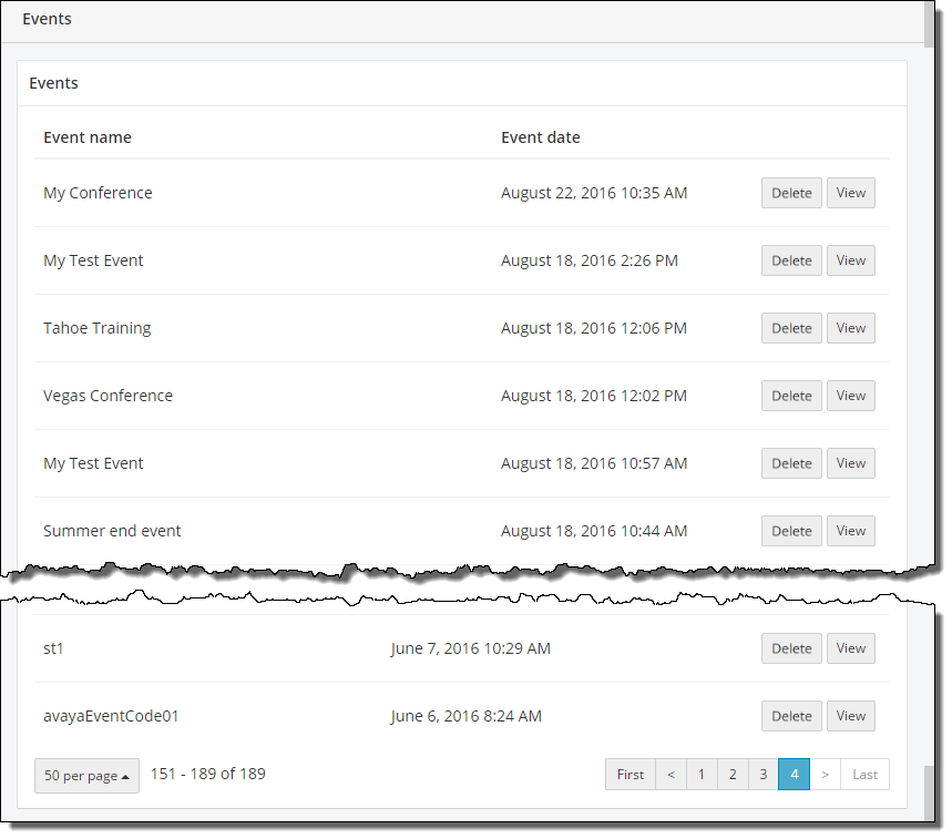 By default, 5 events are displayed on a page in the events list. You can change the number of events that are displayed on a page if you have a large number of events.