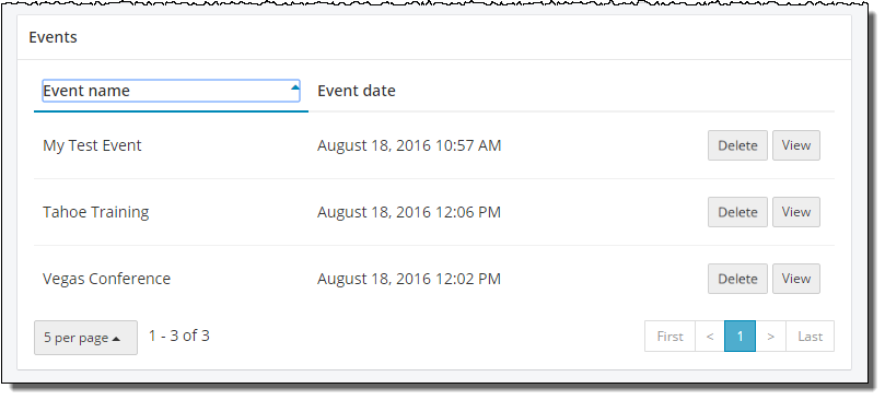 - Select the page numbers to display the events 5 at a time.