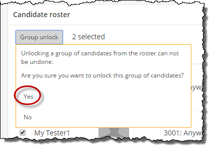 - Select Yes in the Are you sure you want to unlock this group of candidates drop-down list.