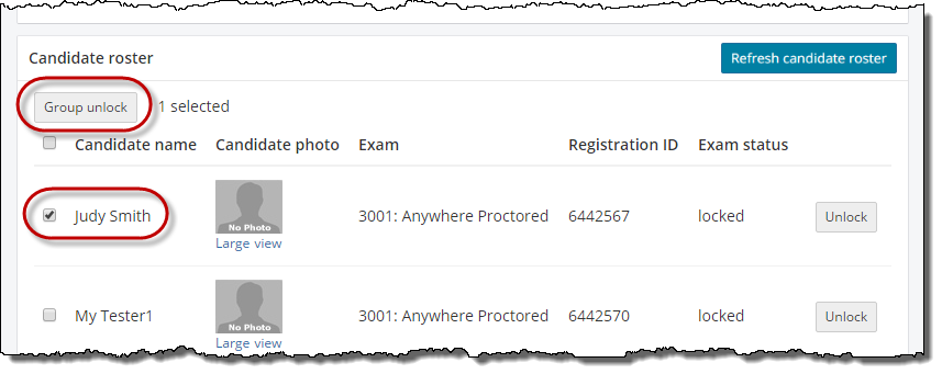 - Select the desired exams on the Candidate roster.