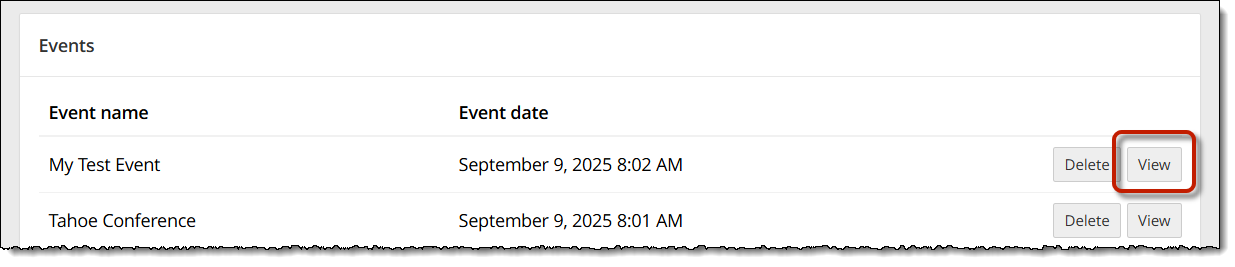 - Select the Event's View button.
